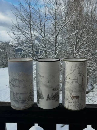 Cette jolie lampe totem flocon est réalisée avec un tissu en popeline de coton fond blanc sur lequel nous avons souhaité un motif esprit montagne.